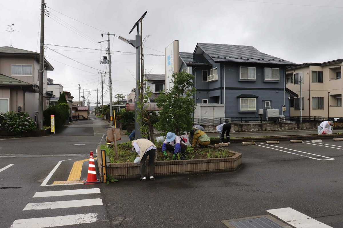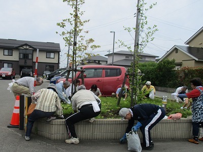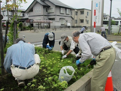 梅雨の合間をぬって69名が参加しました。特に正面入口の植込みは皆さんのご協力ですっかりきれいになりました。