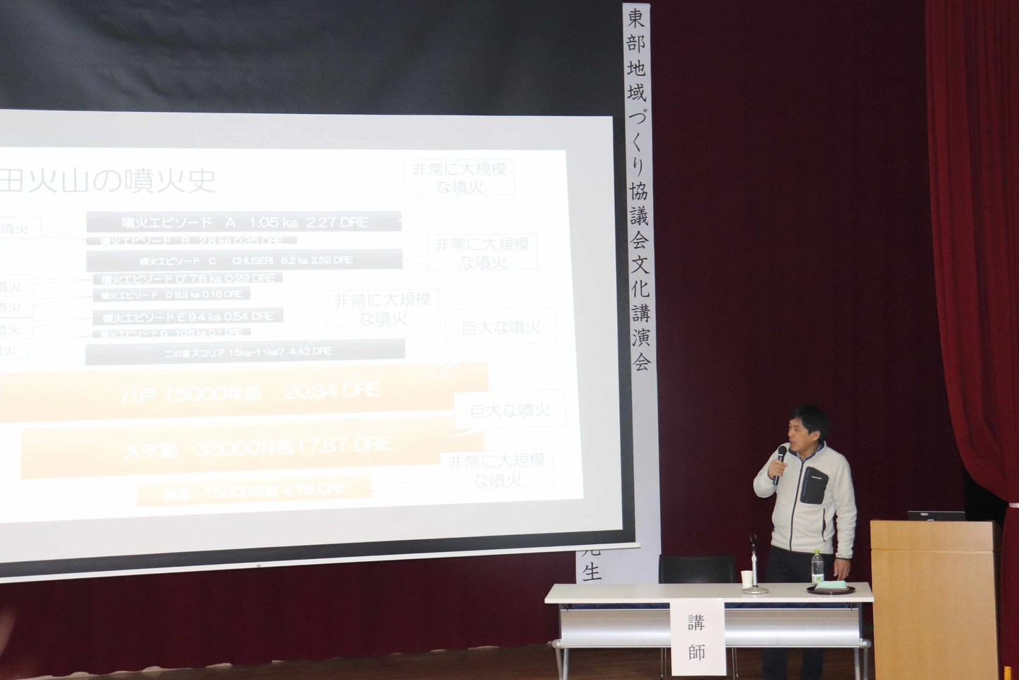 雪解けが進む春のような陽気に恵まれたこの日、秋田大学名誉教授で火山学者の林信太郎先生をお招きしたいーぱる文化講演会に多くの方が来場されました。